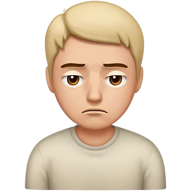small, sad face with a worried or tired expression. The eyes might be droopy, and the mouth could form a subtle frown. the face could have a small patch or a slight shadow on one side, hinting at exhaustion. emoji