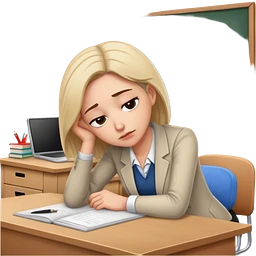 Exhausted female teacher with head down on classroom desk emoji