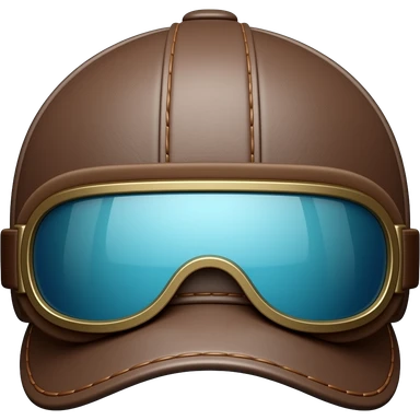 Classy brown leather aviator cap with blue-lens goggles, simple form, glossy. emoji