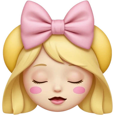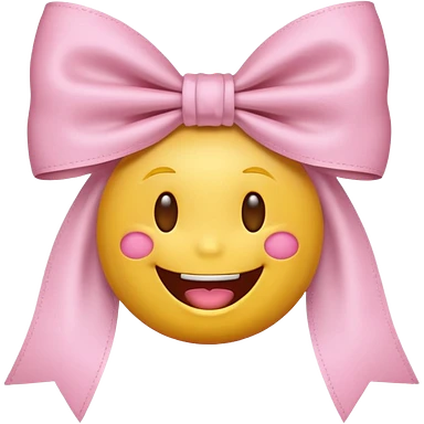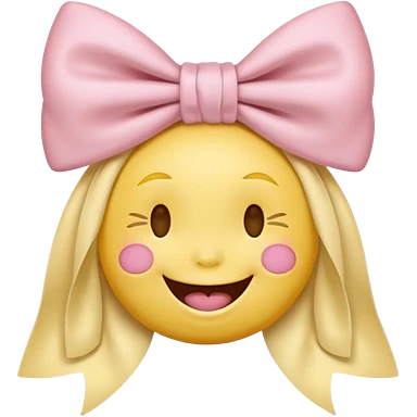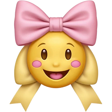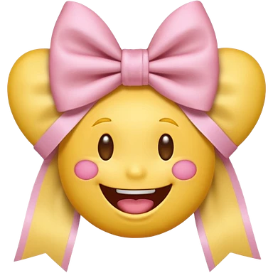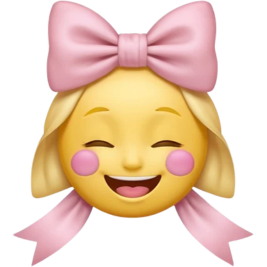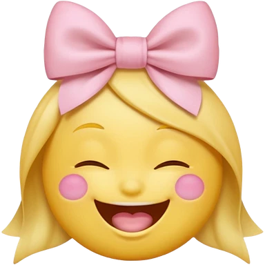 classic yellow laughing emoji with a very pretty pale pale pink bow emoji