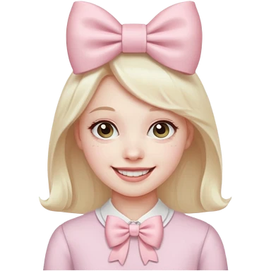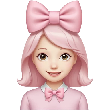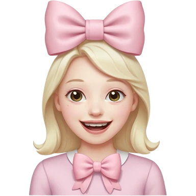 classic laughing emoji with a very pretty pale pale pink bow emoji