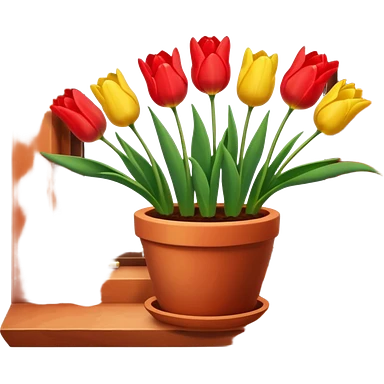 Clay pot with tulips on windowsill emoji | AI Emoji Generator