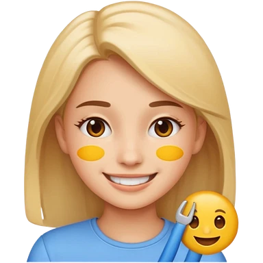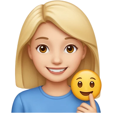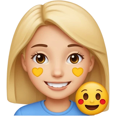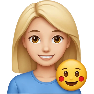 clean girl say hi to each other, she have a long brown hair a little messy and wearing white t-shirt emoji