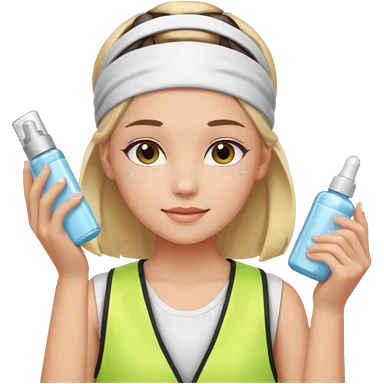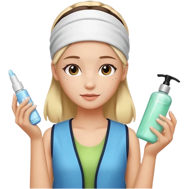 Clean girl aesthetic emoticons, apply skincare products, headband, glowing skin, vest, soft lighting emoji