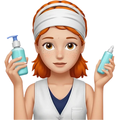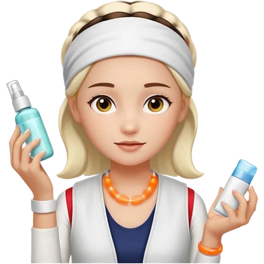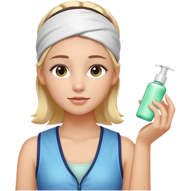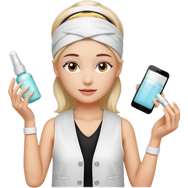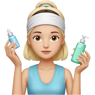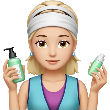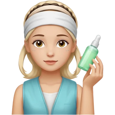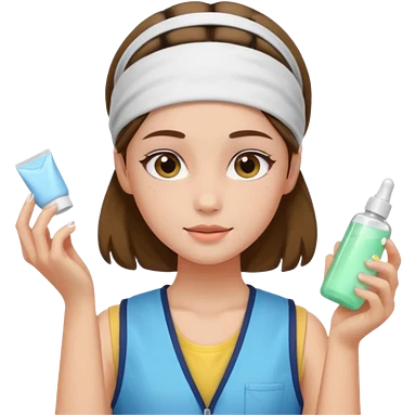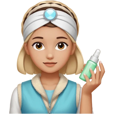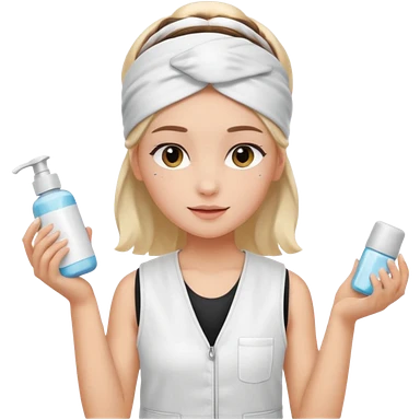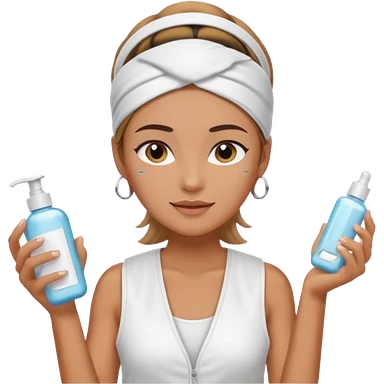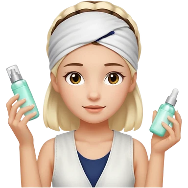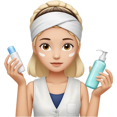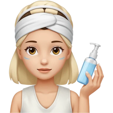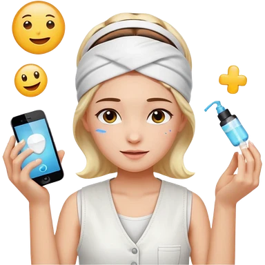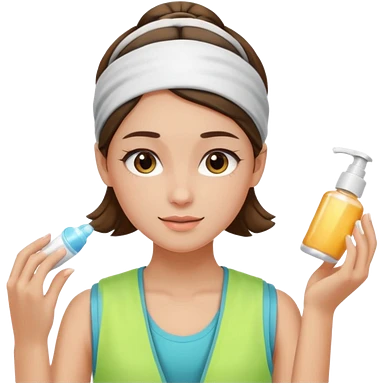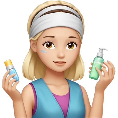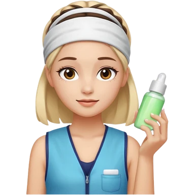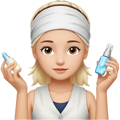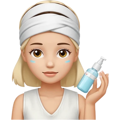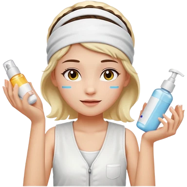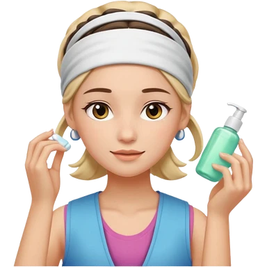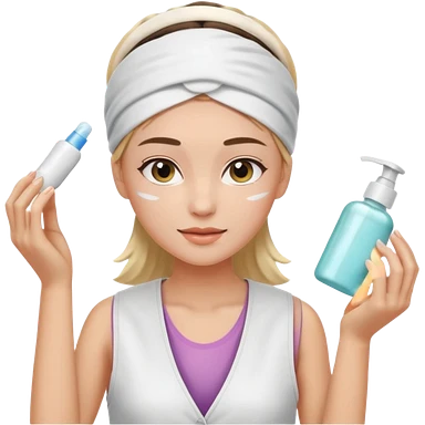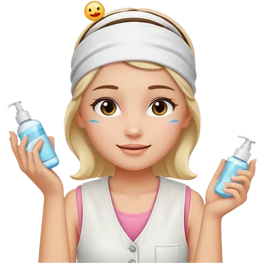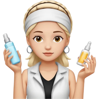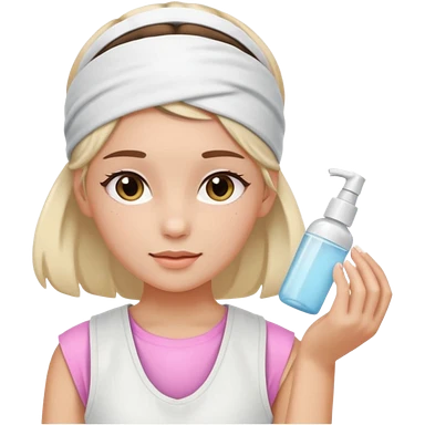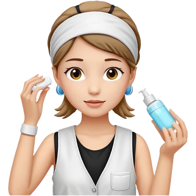 Clean girl aesthetic emoticons, apply skincare products, headband, glowing skin, white vest, soft lighting emoji | AI Emoji Generator