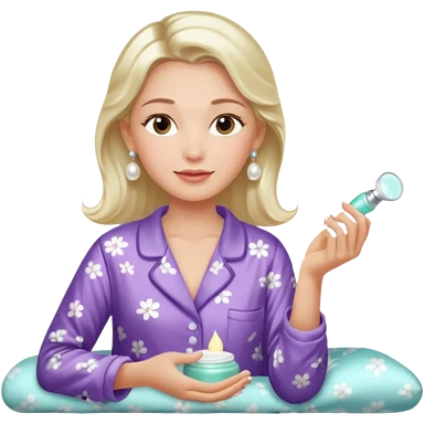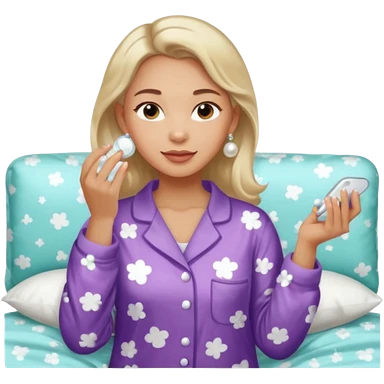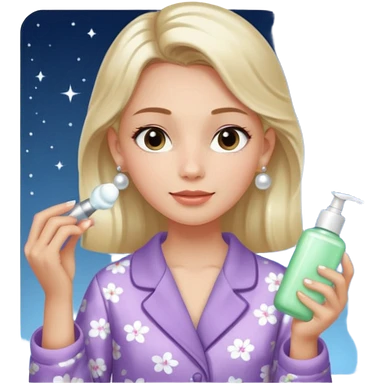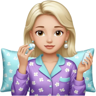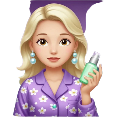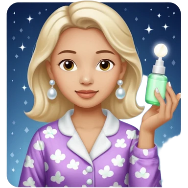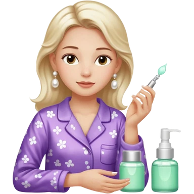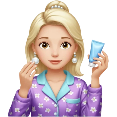 Clean girl aesthetic emoticons, apply skincare products, pearl earrings, glowing skin, pajamas, soft lighting emoji | AI Emoji Generator