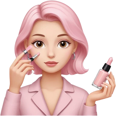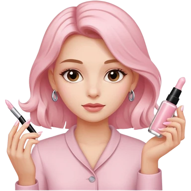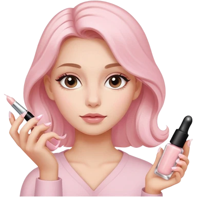 clean girl aesthetic emoji, applying skin care, serum, cream, hair in a claw clip, soft pink and nude palette emoji