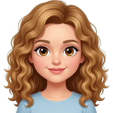Clean Girl, gold brown curls, hazelnut Eyes, cute girly lashes, IOS 18 Style emoji