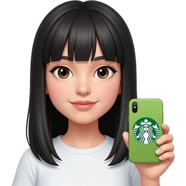 baddie asian girl with slight hooded eyes with thin straight eyebrows long natural lashes high bridged nose and big lips and waist length pin straight hair with clean girl clothes holding matcha starbucksiphone emoji lookalike emoji
