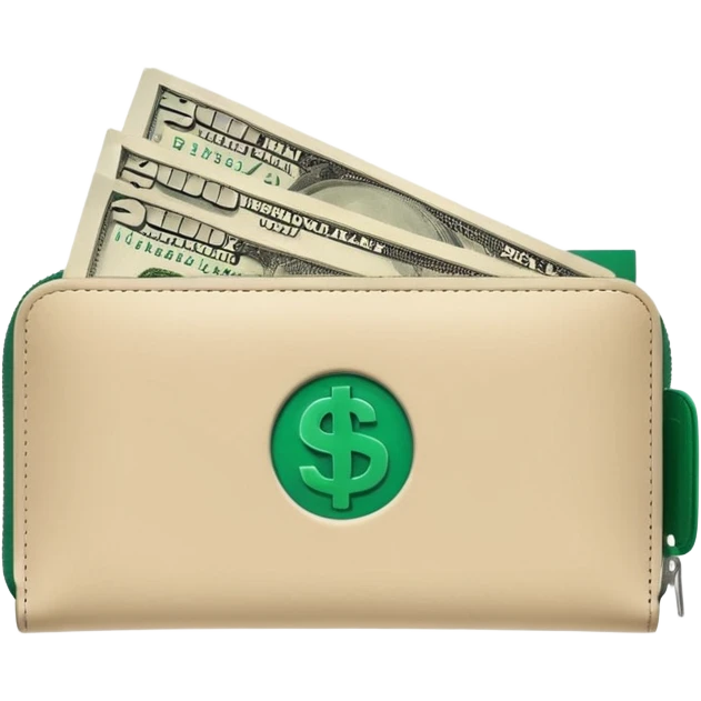 clean light beige wallet with dark green dollar bills sticking out, minimalist design, emoji style emoji | AI Emoji Generator