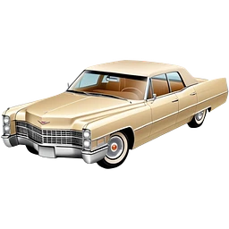 Clean-lined beige 1966 Cadillac DeVille, very minimalistic approach, 30-degree perspective, simplified iconic silhouette, Once Upon a Hollywood vehicle, iOS emoji style emoji | AI Emoji Generator