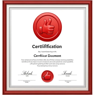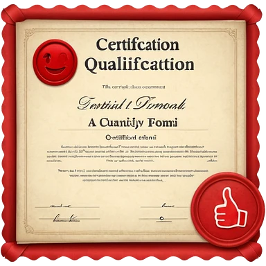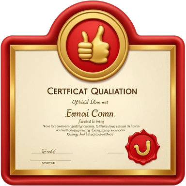 A simple emoji of a certificate document with a seal and a thumbs-up symbol, representing qualification or certification emoji
