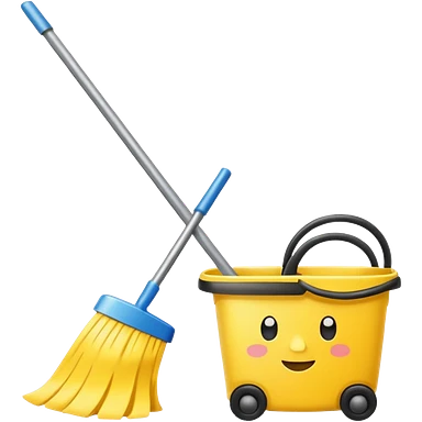cleaning robot dog on wheels with blue, grey, and orange colors emoji