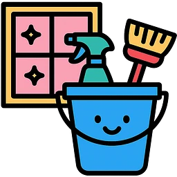 Cleaning supplies, make them beige grey and a tiny bit of pink emoji