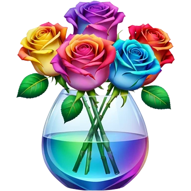 Rainbow color realistic roses in translucent clear crystal vase emoji