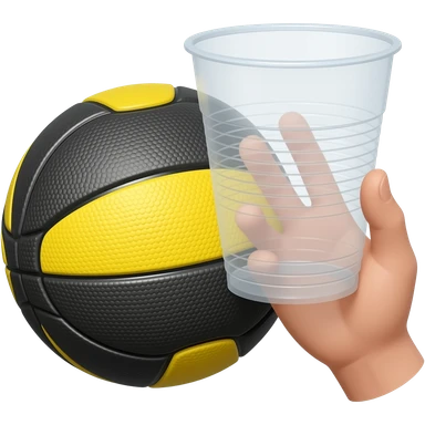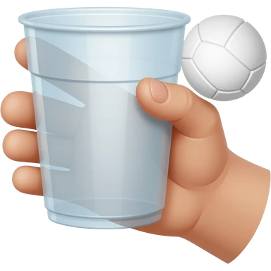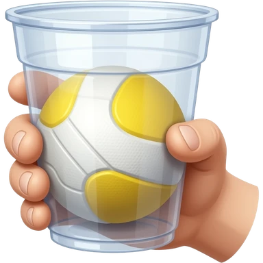 Clear plastic cup in hand with dodgeball emoji | AI Emoji Generator
