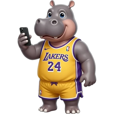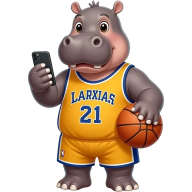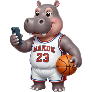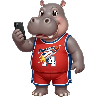 hippopotamus wearing basketball jersey playing cellphone emoji