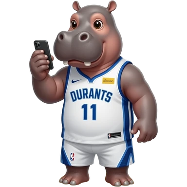 hippopotamus wearing durants jersey playing cellphone in beach emoji