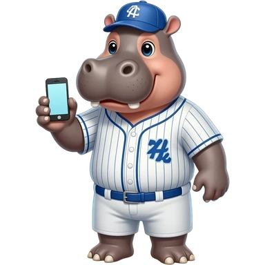 hippopotamus wearing baseball ll jersey playing cellphone in beach emoji