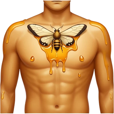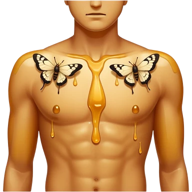 close up male torso with honey gloss drip nd moths nearby emoji