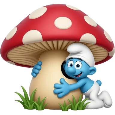 Smurf peaking around mushroom emoji