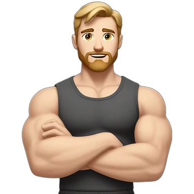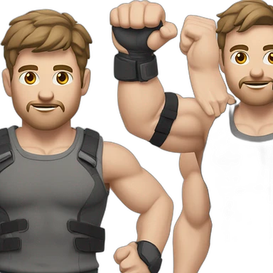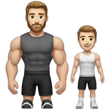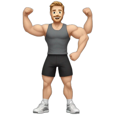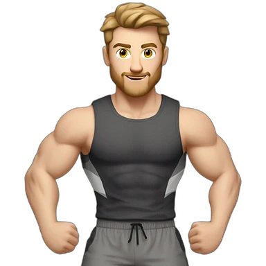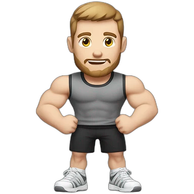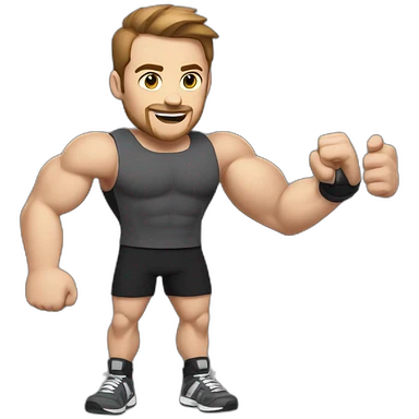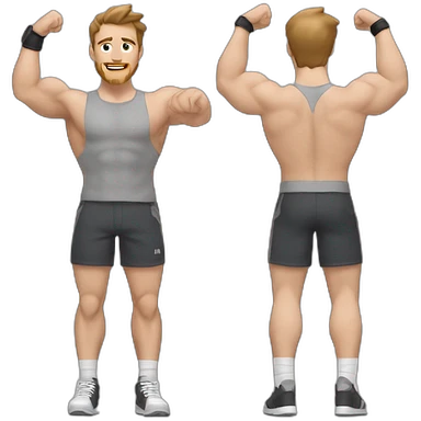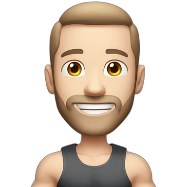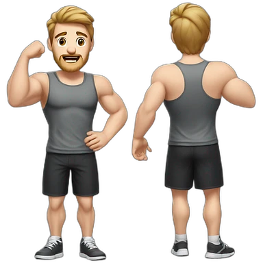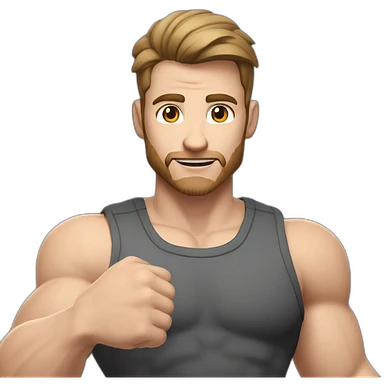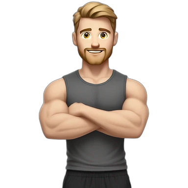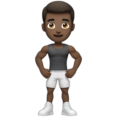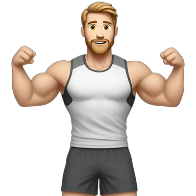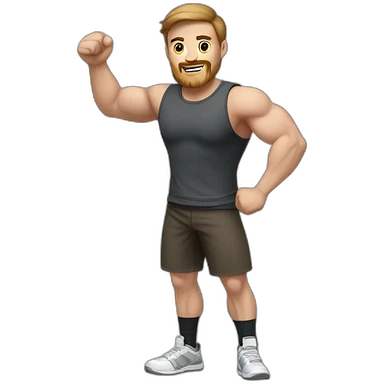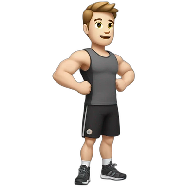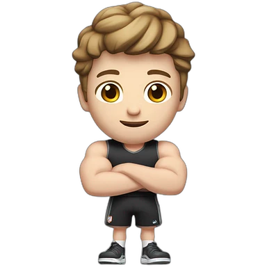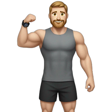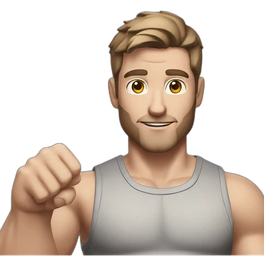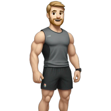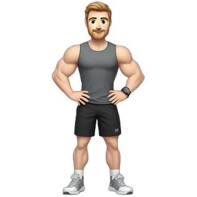 Close up Actively gesturing with hands Pale skinned Fit Man With the biceps and brown hair in dark gray Sleeveless Mike, black oversize sports shorts, watch and white Sneakers emoji