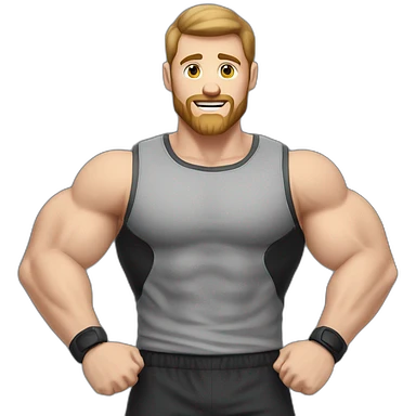 Close up Actively biceps with hands Pale skinned Fit woman With the biceps and blonde hair in dark gray Sleeveless Mike, black sports shorts, watch and white Sneakers and Blue Eyes emoji