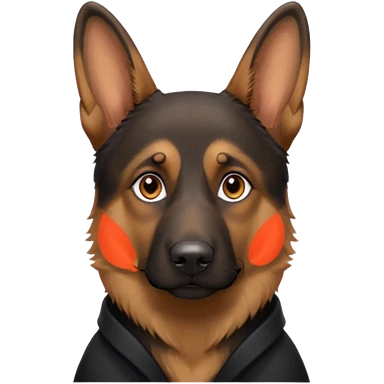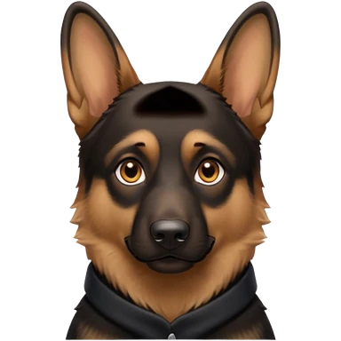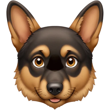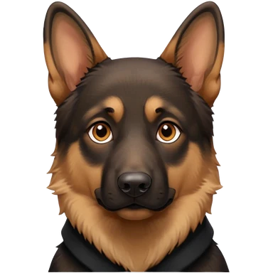 A close-up portrait of a German Shepherd with intense brown eyes and alert ears, against a blurred natural background. High realism, shallow depth of field. emoji
