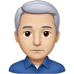 Close-up portrait of René Monclova. Light-skinned older man with round face and broad jaw. Short silver-gray hair with visible receding hairline. Warm brown eyes, thick eyebrows. Neutral expression. Wearing a dark button-up shirt. emoji | AI Emoji Generator