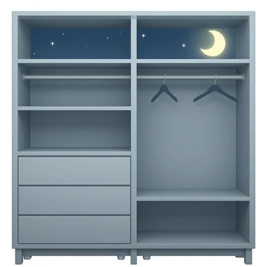 Closet organizer with visible compartments filled with black long sleeve shirts, sweaters and work clothes emoji