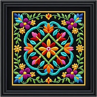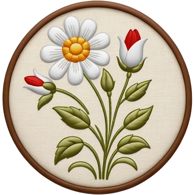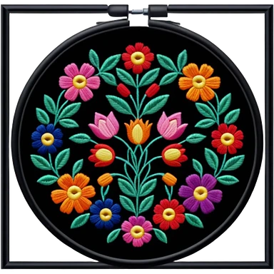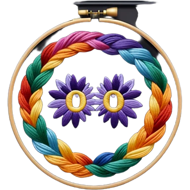 Vintage embroidery hoop with blue flowers embroidered and dark brown embroidery hoop border emoji