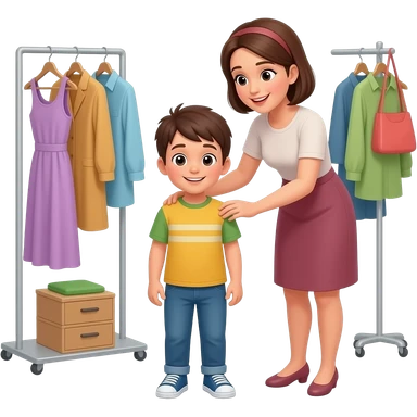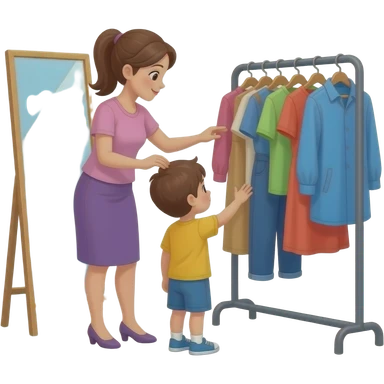 clothes assistent helping a kid with clothes in the fitting room emoji