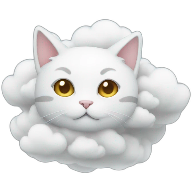 A fluffy cat with cloud-like fur, small angelic wings, flying in a pastel sky with soft clouds and a cheerful expression. emoji