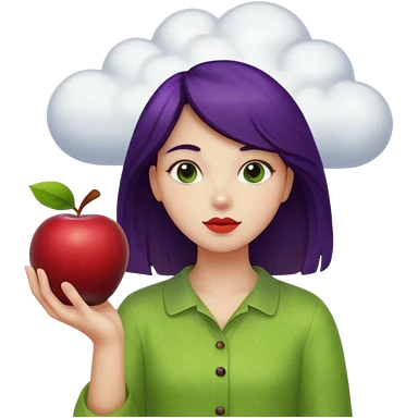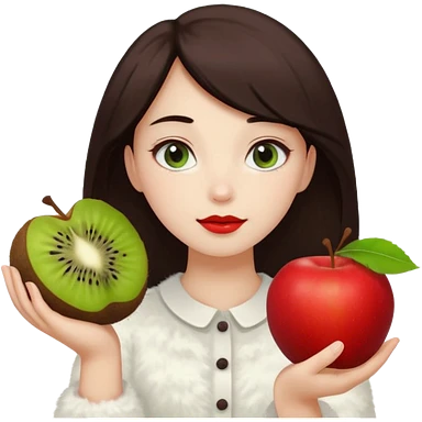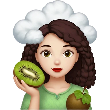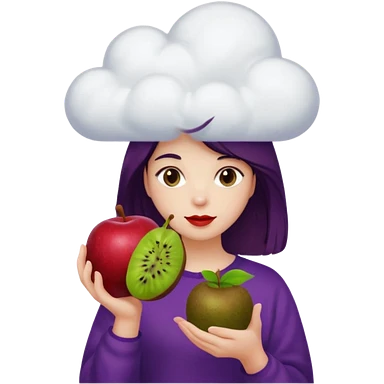 vanila aesthetic girl holding cloud and prune and apple & kiwi emoji