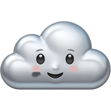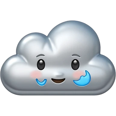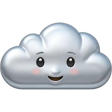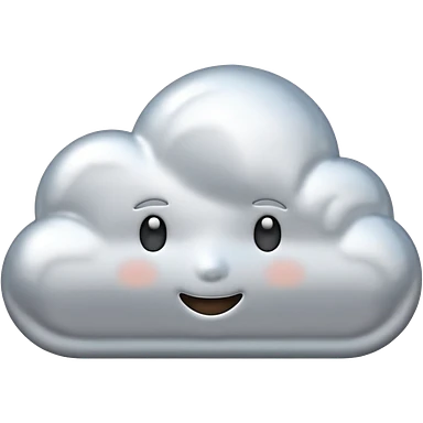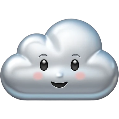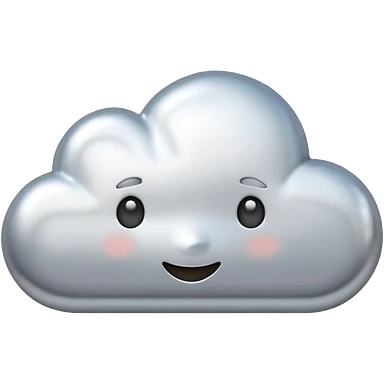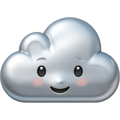A cute cloud emoji made of silver chrome, smooth rounded shape, glossy metallic surface, soft reflections, minimal and friendly design, iOS emoji style, centered, clean white background, soft lighting emoji
