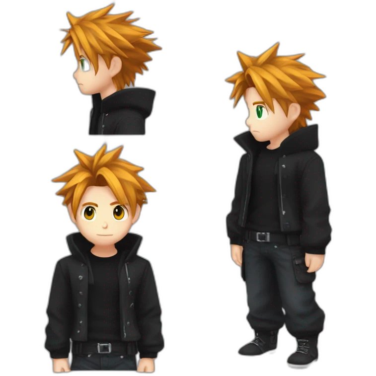 Cloud strife ginger hair. Black clothes full body spiritual emoji