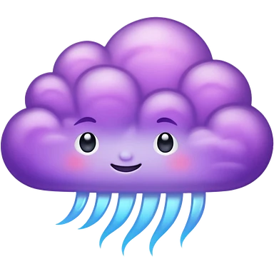 A tiny kawaii cloud emoji with a cheeky smile and wink, soft neon glow in purple/cyan, little sparkles floating, playful delulu vibe. emoji