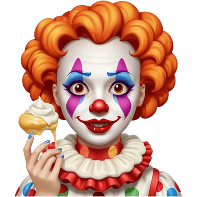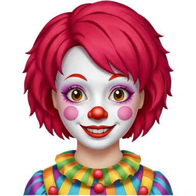clown boy with messy very long long blonde hair blue eyes, designer shirt and hair pins emoji