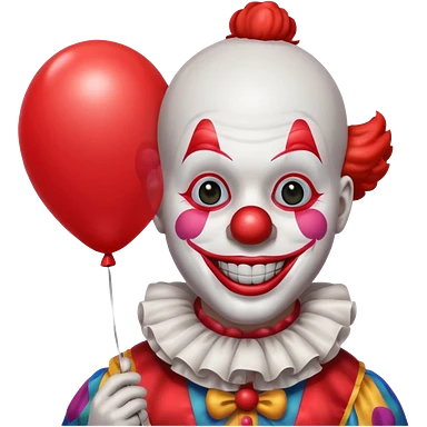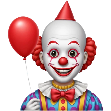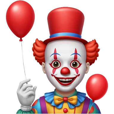 Clown with red balloon and big scary smile emoji