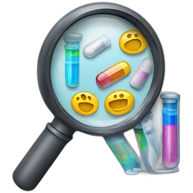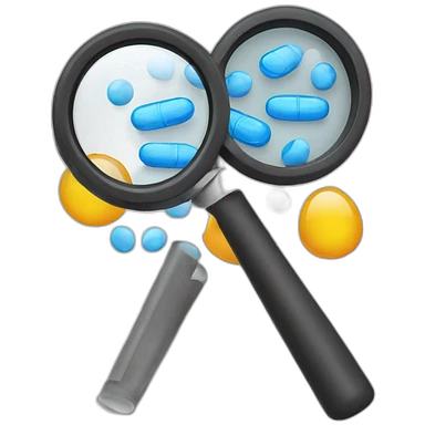 i want an emoji representing a printer and a magnifying glass covering it showing medication drugs emoji