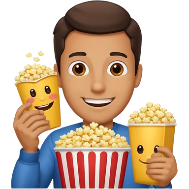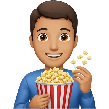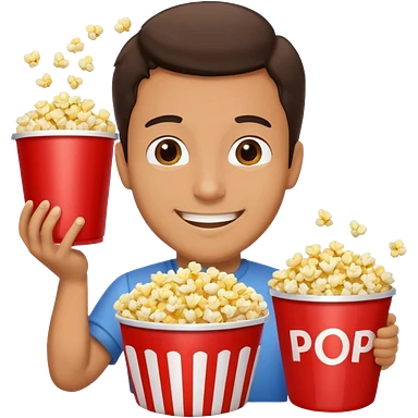minimalist sweet popcorn emoji style, red and white popcorn box, caramel popcorn emoji