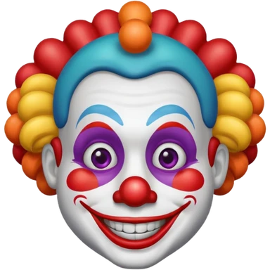 generate clown emoji with a big curly black hair wide black smile, long and pointy white nose emoji