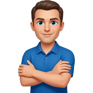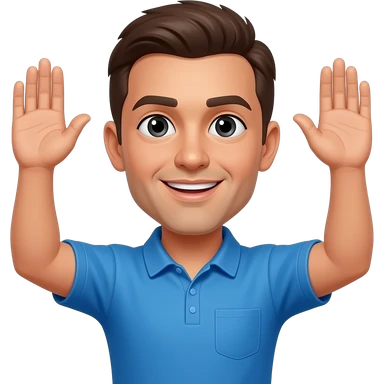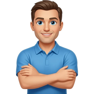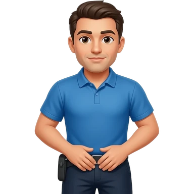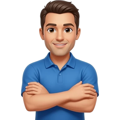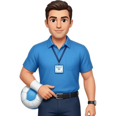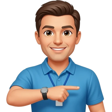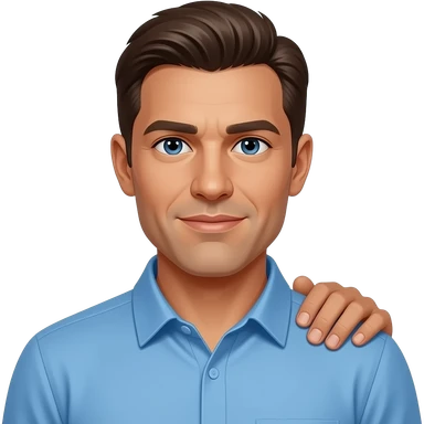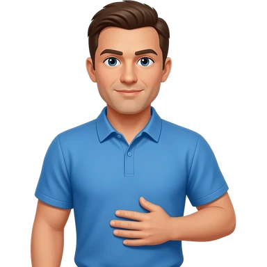 coach in a blue shirt touching shoulder with finger tips emoji