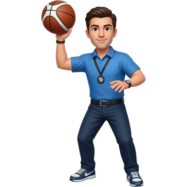 coach in a blue shirt shooting his hand emoji