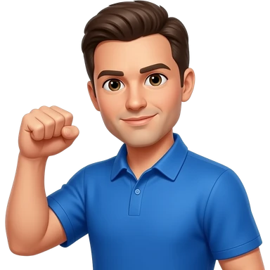 coach in a blue shirt showing a closed fist emoji