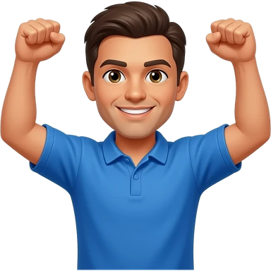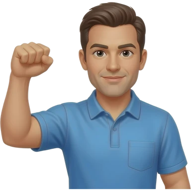 coach in a blue shirt making a guns up gesture emoji