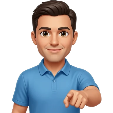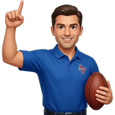 coach in a blue shirt pointing to his skin emoji