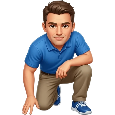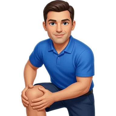 coach in a blue shirt grabs down to his knee emoji