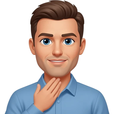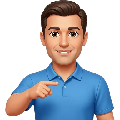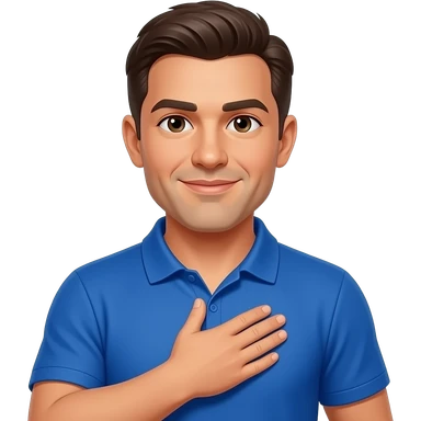 coach in a blue shirt touching his own shoulder with finger tips emoji