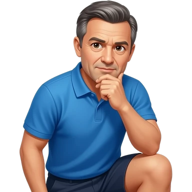 coach in a blue shirt grabs down on his thigh emoji
